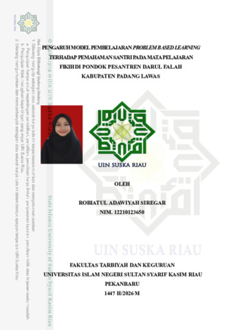 PENGARUH MODEL PEMBELAJARAN PROBLEM BASED LEARNING TERHADAP PEMAHAMAN SANTRI PADA MATA PELAJARAN FIKIH DI PONDOK PESANTREN DARUL FALAH KABUPATEN PADANG LAWAS