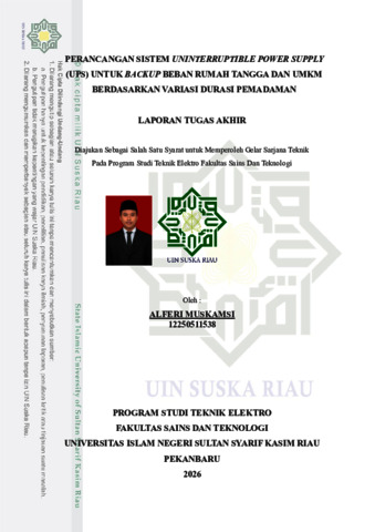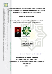 ALFERI MUSKAMSI (2026) PERANCANGAN SISTEM UNINTERRUPTIBLE POWER SUPPLY (UPS) UNTUK BACKUP BEBAN RUMAH TANGGA DAN UMKM BERDASARKAN VARIASI DURASI PEMADAMAN. Skripsi thesis, Universitas Islam Negeri Sultan Syarif Kasim.