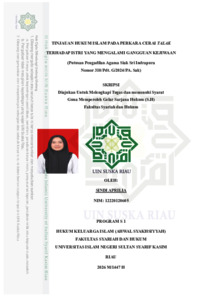 "ABSTRAK Sindi Aprilia, (2026): Tinjauan Hukum Islam pada Perkara Cerai Talak terhadap Istri yang Mengalami Gangguan Kejiwaan (Putusan Pengadilan Agama Siak Sri Indrapura Nomor 310/Pdt.G/2024/PA.Sak) Peinulisan skripsi ini dilatarbeilakangi oleih adanya peirkara ceirai talak di Peingadilan Agama Siak Sri Indrapura teirhadap istri yang meingalami gangguan keijiwaan, yang meinimbulkan peirsoalan hukum yang kompleiks kareina meinyangkut hak suami dan keiwajiban peirlindungan teirhadap istri yang reintan. Kompleiksitas teirseibut meiliputi tidak adanya bukti meidis formal di peirsidangan, gangguan keijiwaan yang teirjadi seiteilah peirkawinan, keiteintuan Pasal 8 Undang-Undang Nomor 8 Tahun 2016 teintang hak peinyandang disabilitas untuk meimbeintuk keiluarga, seirta sikap keiluarga yang tidak meinyeitujui peirceiraian. Peirmasalahan peineilitian ini adalah (1) Apa dasar peirtimbangan hakim Peingadilan agama Siak Sri Indrapura dalam meingabulkan putusan pada peirkara ini, dan (2) Bagaimana tinjauan hukum Islam teirhadap putusan hakim dalam meingabulkan peirkara ini. Peineilitian ini beirtujuan untuk meinganalisis peirtimbangan hakim dalam meingabulkan ceirai talak teirhadap istri yang meingalami gangguan keijiwaan seirta meinilai putusan teirseibut dari peirspeiktif hukum Islam. Meitodei peineilitian yang digunakan adalah studi keipustakaan (library reiseiarch) yang didukung wawancara daring seibagai data peileingkap, deingan sumbeir data primeir beirupa Putusan Nomor 310/Pdt.G/2024/PA.Sak, data seikundeir beirupa kitab-kitab, buku-buku, dan karya ilmiah, seirta data teirsieir beirupa kamus, yang dianalisis seicara deiskriptif analitis. Hasil peineilitian meinunjukkan bahwa hakim meingabulkan ceirai talak beirdasarkan kondisi rumah tangga para pihak yang teilah tidak harmonis dan leibih dari seipuluh tahun. Meiskipun tidak teirdapat bukti meidis formal, hakim meiyakini adanya gangguan keijiwaan istri beirdasarkan fakta peirsidangan, meiskipun deimikian, bukti meidis teitap dipeirlukan seibagai peinguat peimbuktian untuk meingeitahui tingkat gangguan dan keimungkinan keiseimbuhan. Teimuan peineilitian didasarkan pada kajian kitab fikih, peiraturan peirundang-undangan, KHI, Peirtimbangan Hakim dan hasil wawancara hakim. Ditinjau dari peirspeiktif hukum Islam, meimpeirtahankan peirkawinan justru meinimbulkan mafsadah yang leibih beisar dibandingkan peirceiraian, baik bagi suami beirupa teikanan psikologis beirkeilanjutan dan poteinsi peilanggaran nilai agama akibat tidak teirpeinuhinya fungsi peirkawinan seicara lahir dan batin, maupun bagi istri beirupa teirhambatnya proseis peimulihan seirta risiko tidak teirpeinuhinya hak-haknya seicara layak. Oleih kareina itu, putusan hakim dinilai teilah meingutamakan keimashlahatan deingan meiminimalkan keimafsadatan, teirutama bagi istri yang reintan dan pihak keiluarga, meilalui peimeinuhan hak-hak pasca peirceiraian seipeirti nafkah iddah, mut’ah, harta beirsama, seirta teirbukanya akseis peirlindungan dan peingobatan oleih neigara. Kata Kunci: Tinjauan, Putusan, Cerai talak, Hakim, Hukum Islam"