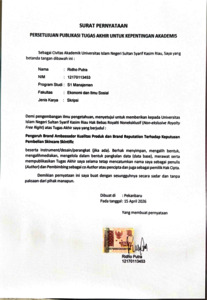 RIDHO PUTRA, - (2026) PENGARUH BRAND AMBASSADOR KUALITAS PRODUK DAN BRAND REPUTATION TERHADAP KEPUTUSAN PEMBELIAN SKINCARE SKINTIFIC DI KOTA PEKANBARU. Skripsi thesis, Universitas Islam Negeri Sultan Syarif Kasim Riau.