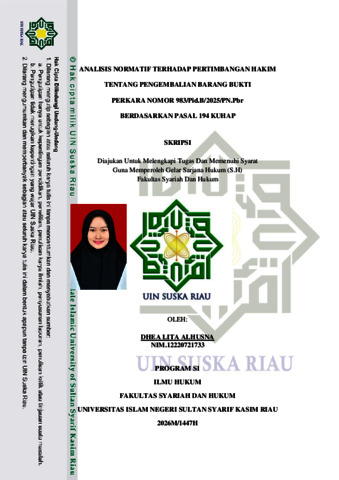 DHEA LITA ALHUSNA, - (2026) ANALISIS NORMATIF TERHADAP PERTIMBANGAN HAKIM TENTANG PENGEMBALIAN BARANG BUKTI PERKARA NOMOR 983/Pid.B/2025/PN.Pbr BERDASARKAN PASAL 194 KUHAP. Skripsi thesis, UNIVERSITAS ISLAM NEGERI SULTAN SYARIF KASIM RIAU.